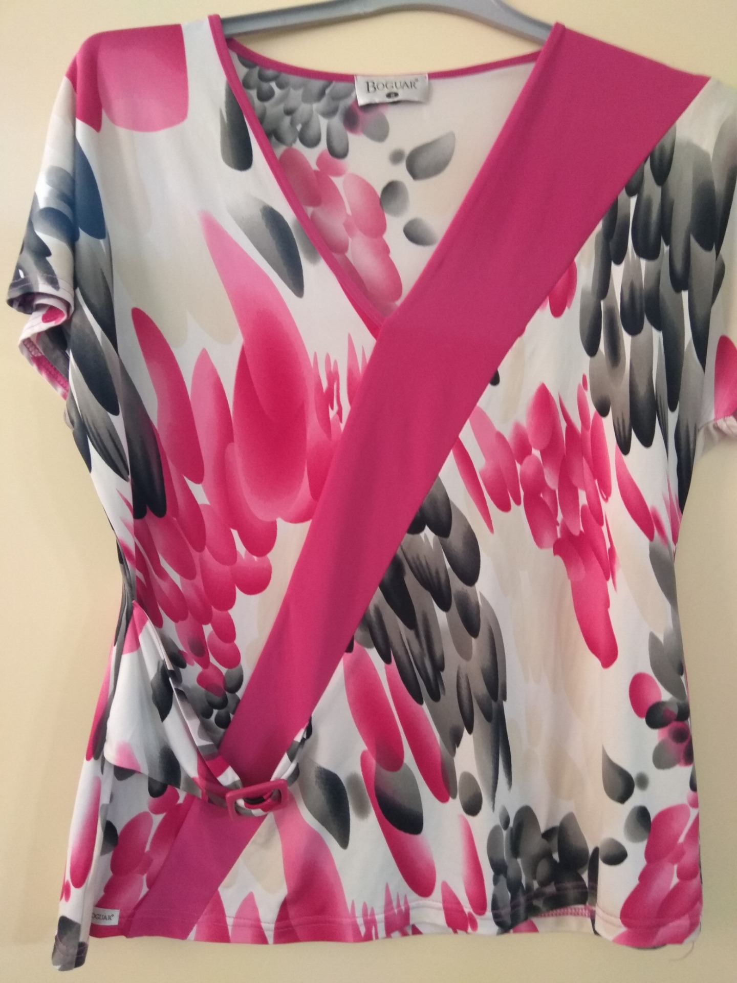 Con hebilla estampada rosa y gris